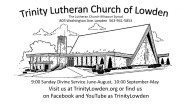 New to the Lowden area, just visiting, or a lifelong resident, everyone is welcome to join us at Trinity as we gather to hear God’s Word of forgiveness, life, and salvation. In addition to weekly Divine Service, Sunday School, and Bible Study, we have a variety of youth events, Bible studies, chapel services, and community events going on throughout the year. For the most current news, be sure to follow us on our Facebook page.